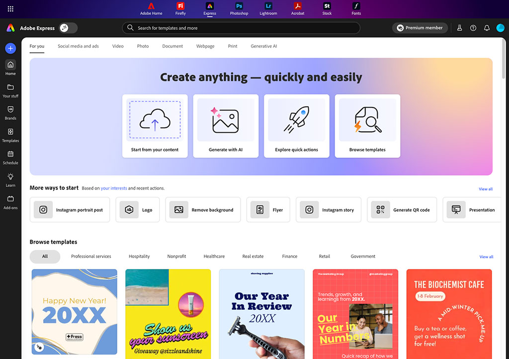 Because Canva and Adobe Express are tools aimed in large part at non-professional designers, both programs offer a wide range of templates to help you get your designs started.