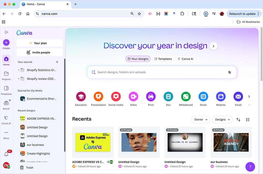 Overall, Canva’s interface is highly intuitive and requires minimal learning. If you have basic computer skills, or familiarity with software like Microsoft Word or PowerPoint, you should be able to create a professional-looking design in Canva within a few minutes.